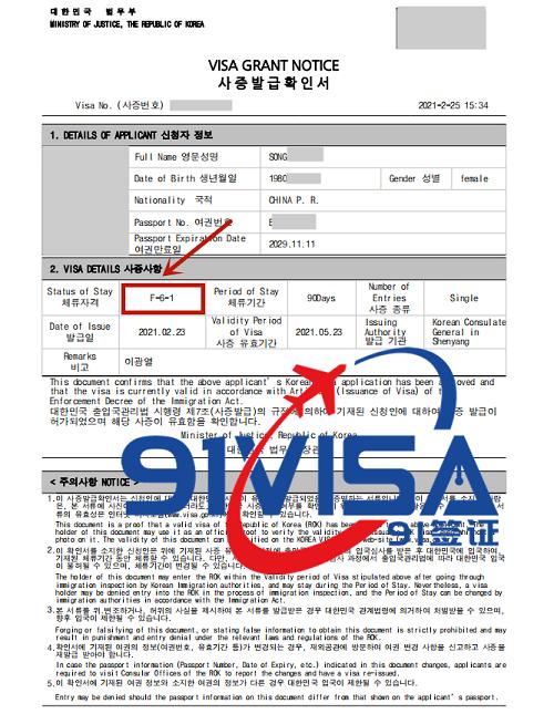 标题:办韩国结婚移民签证(F-6),沈阳宋女士成功出签-【91签证网】